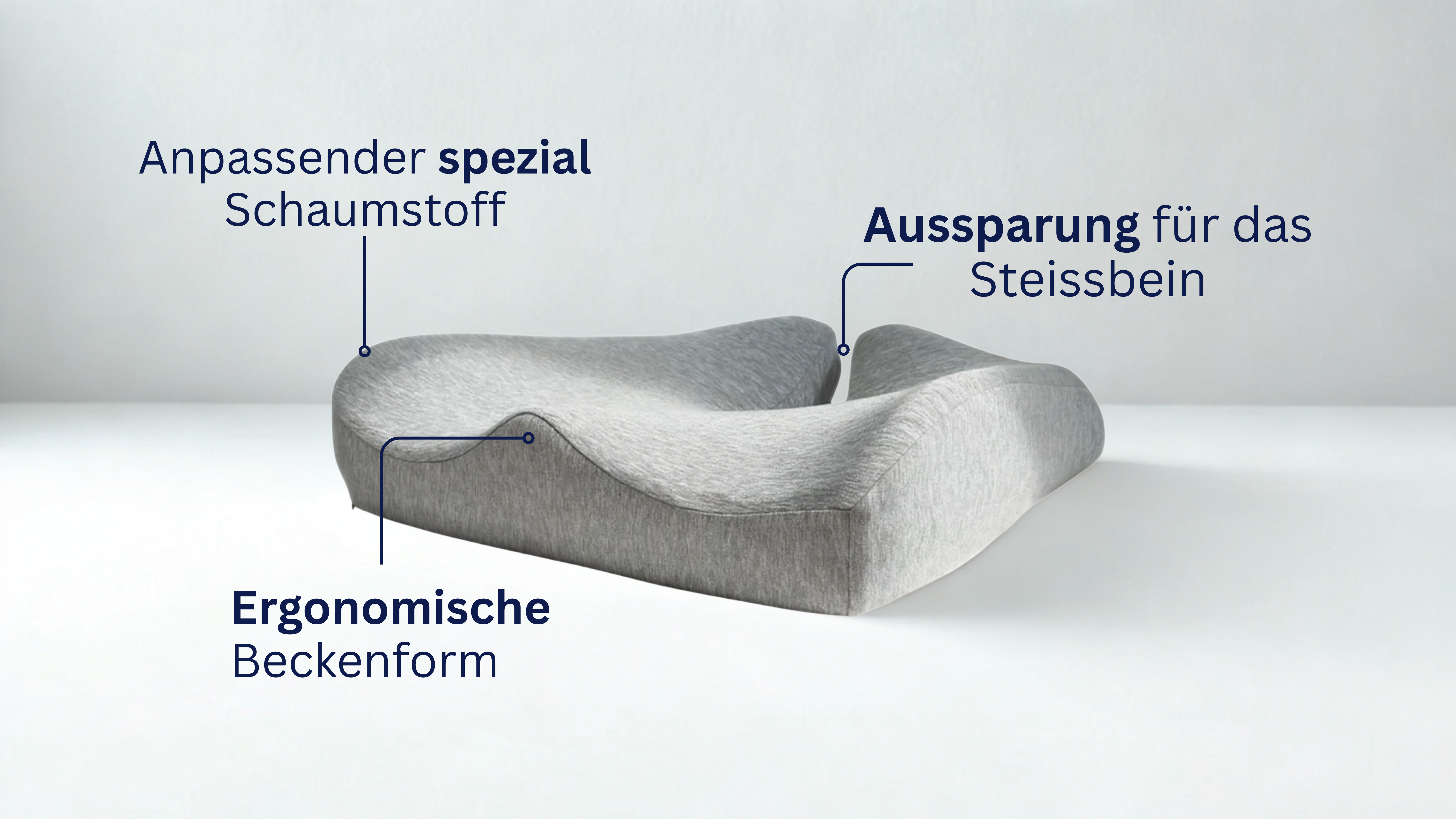 Dank der speziellen U-Form entlastet das Sitzkissen gezielt Rücken, Hüften und Steißbein. Die Rückenkissen unterstützen eine gesunde Haltung und bieten spürbare Linderung sowie maximalen Komfort. Viele Kunden berichten von deutlich weniger Schmerzen.