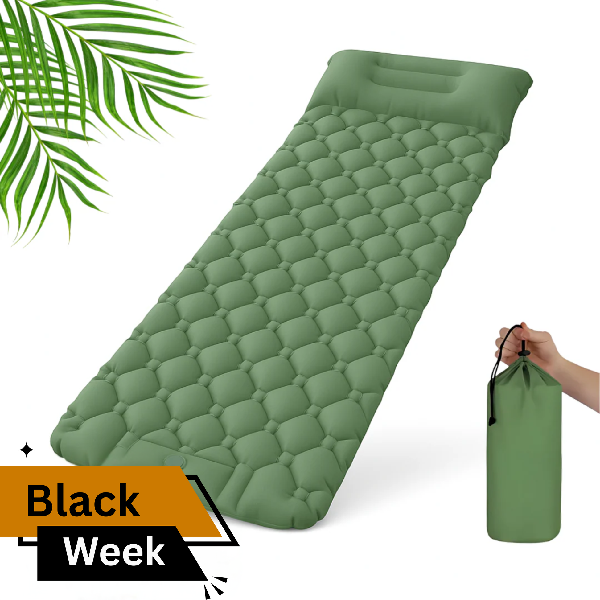 Die kompakte Outdoor Isomatte bietet maximalen Schlafkomfort, wo immer du unterwegs bist. Gefertigt aus robustem 4D-Nylon, ist sie wasserdicht, abriebfest und leicht zu reinigen. Dank der integrierten Fuß- oder Handpumpe ist sie in nur ca. 50 Sekunden aufgeblasen und ebenso schnell wieder entlüftet. Alternativ kannst du das seitliche Mundventil nutzen – in ca. 30 Sekunden ist die Matte aufgeblasen. Dank der Luftpolsterung ist die Matte perfekt für einen erholsamen Schlaf beim Camping, Wandern, im Auto oder auf Reisen.